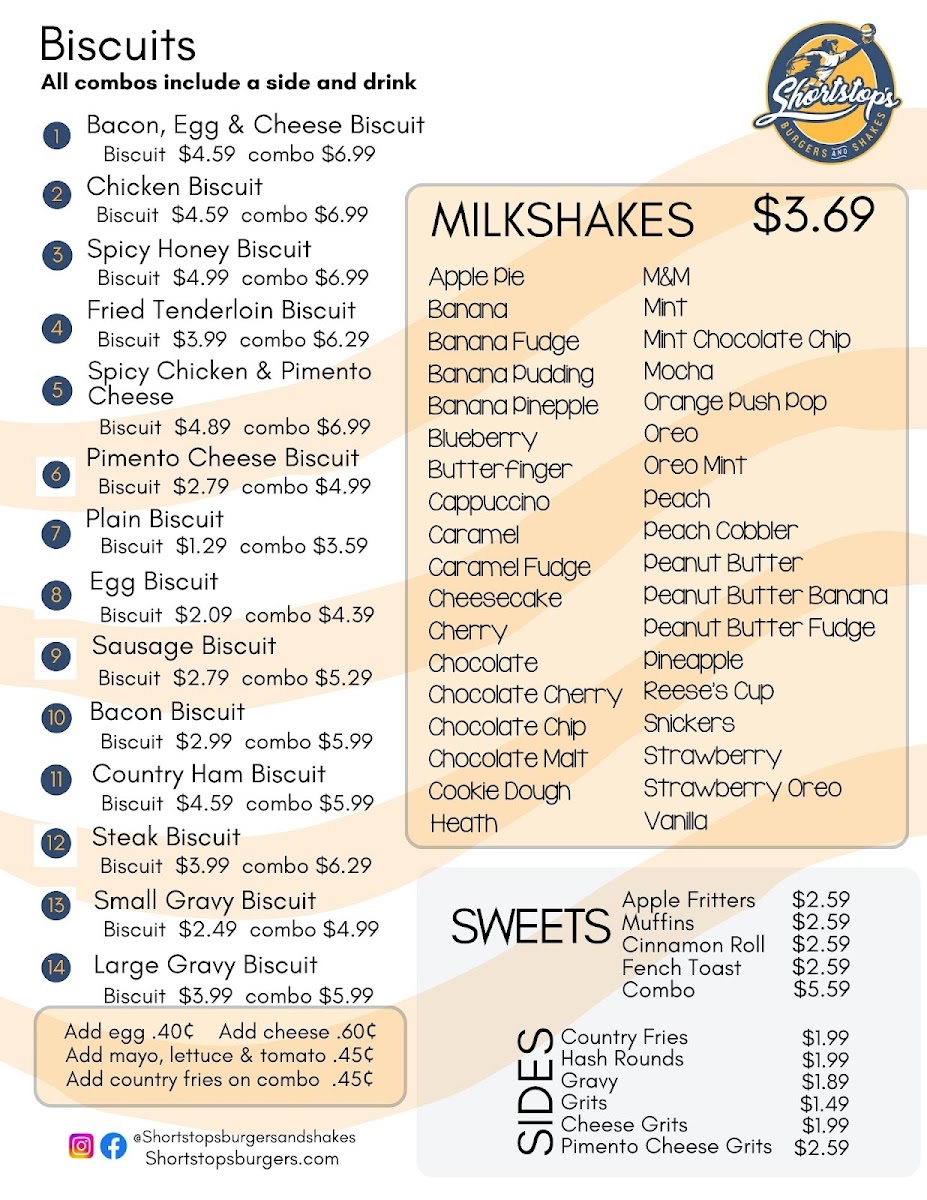 Shortstop's Burgers and Shakes Ramseur is a hidden gem located in Ramseur, North Carolina, specializing in delicious fast food that doesn’t compromise on quality. Renowned for their impressive burgers, homemade chips, and mouthwatering milkshakes, this eatery is a must-visit. Customers rave about the friendliness of the staff and the consistent freshness of the food. Standout dishes include the bacon egg and cheese biscuit, as well as boneless wings, ensuring there’s something for everyone. With clean, welcoming surroundings, Shortstop's perfectly blends casual dining with a comforting atmosphere, making it an ideal stop for both locals and travelers alike.